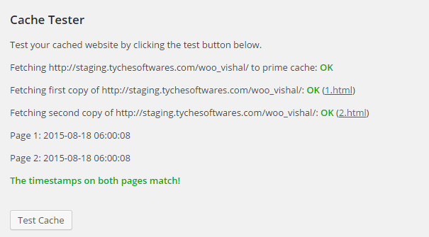 It has an interesting “Test Cache” option. When I ran it, it created a couple of cache copies for my website.