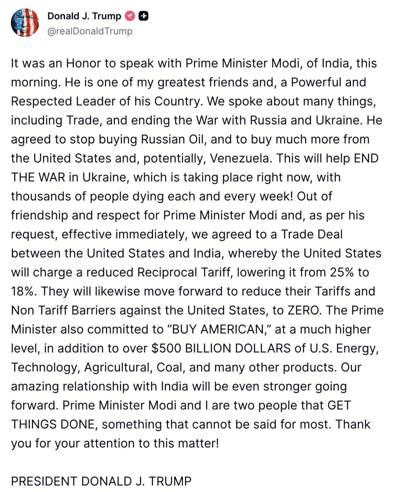 US President Donald Trump announces tariff cuts and a major trade deal with India following talks with Prime Minister Narendra Modi